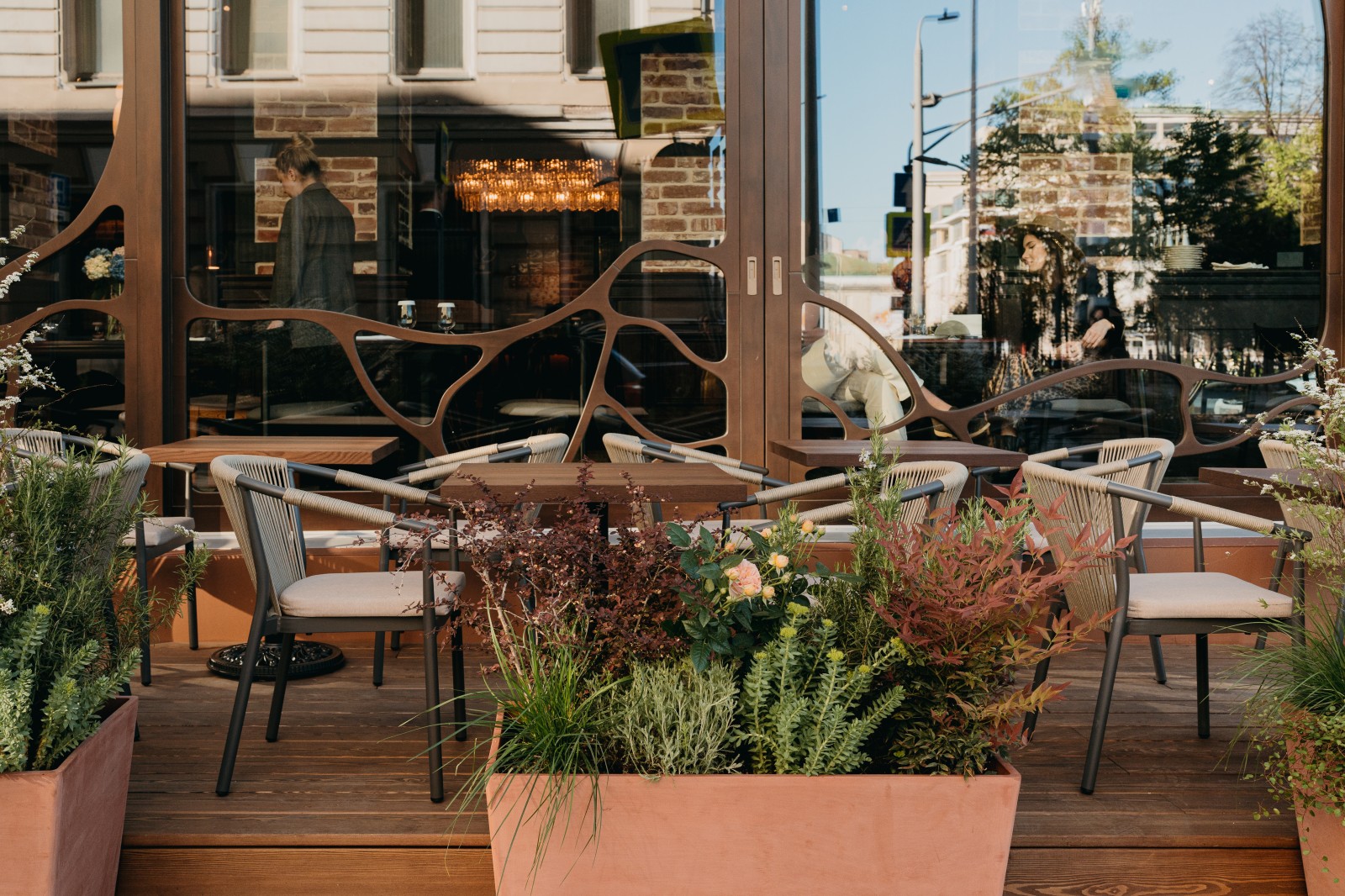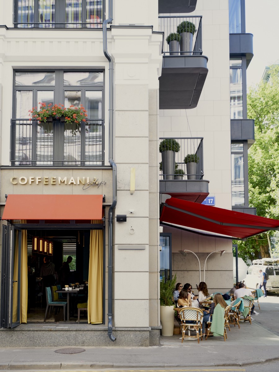 Не одна, а сразу две – «Кофемания Chef’s» открывает сезон, буквально окружив ресторан террасами. На одной плетеные кресла, теплый свет сквозь фиалковую маркизу и средиземноморское настроение. Другая – совсем дачная, с цветами, раздвижной крышей и видом на Булгаковский сквер. Выбирать, кому на какой уютнее, можно уже с 8 часов утра.