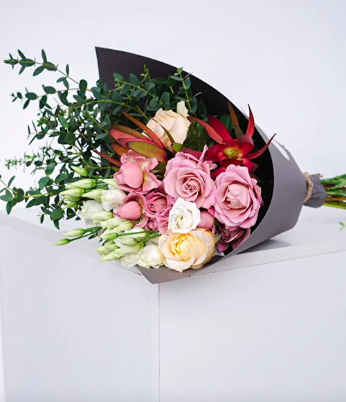 Можно выбрать упаковку «Сам себе флорист» или готовый букет. В первой найдете цветы в коробке с инструкцией по уходу и видео от флористов.