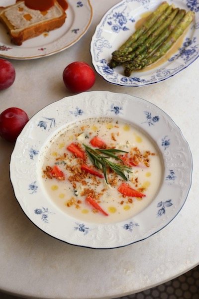 Среди новинок в качестве закуски в кафе предлагают спаржу с соусом из печеного чеснока или французский пирог пате-крут с индейкой и тыквой. В качестве более сытной закуски, которая может заменить полноценный обед — мидии том-ям с соусом из белого вина и клубники, подают с гречневым хлебом. Для летнего обеда, ужина и даже десерта подойдет легкий холодный грушевый суп с кусочками горгондзолы, на основе грушевого пюре с добавлением белого сухого вина и йогурта. И наконец, самый летний десерт — запеченный персик с мороженым, малиновым кремом-базилик и вафельной крошкой, который поможет не только освежиться, но и получить яркое гастрономическое впечатление.
