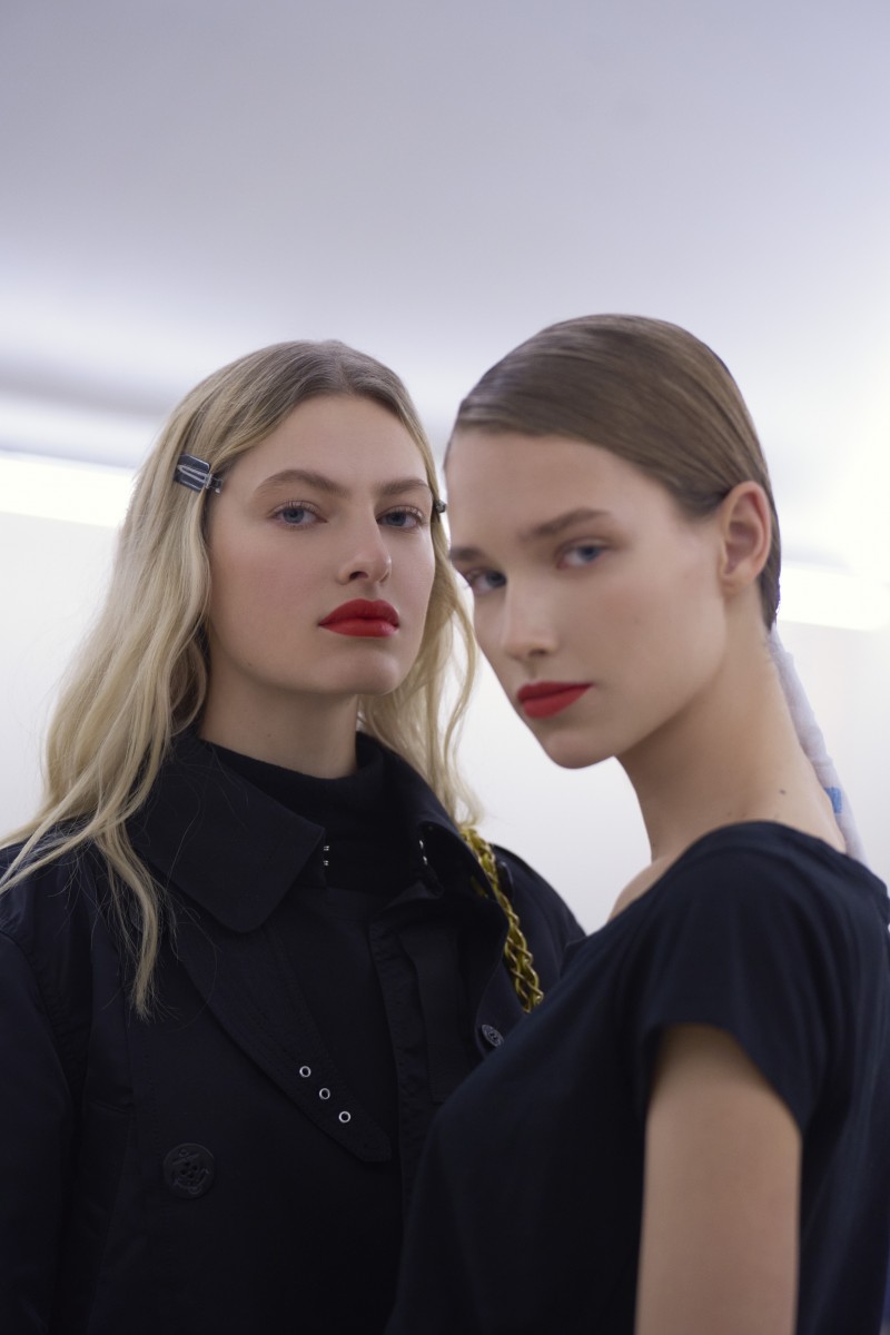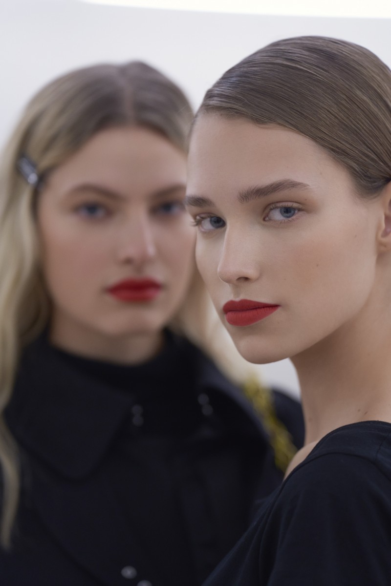 Визажисты использовали глянцевые и матовые красные и красно-оранжевые оттенки помад и блесков для губ. При этом глаза и даже ресницы девушек оставались нетронутыми. Идеально ровный тон, слегка подчеркнутые брови, едва заметные розовые или персиковые румяна и акцент на губы — вот, как будет выглядеть мейк весны 2023. И чтобы не отвлекать от него внимания, делайте строгую прическу с гладкими прямыми волосами или низктий хвост на прямой или косой пробор.