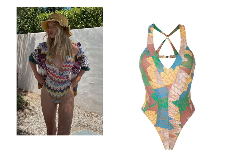 Модель Эльза Хоск недавно стала мамой, так что сейчас предпочитает закрытые купальники. И мы в восторге от ее разноцветного монокини с глубоким декольте. И особенно стильно оно смотрится с соломенной шляпой.