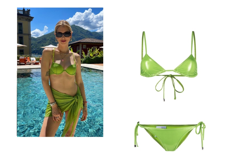 В этом сезоне лидирует зеленый цвет, причем во всех его вариациях — от темного до светлого. Не зря итальянский блогер и бизнесвумен Кьяра Ферраньи открыла пляжный сезон в салатовом бикини. Очень похожий мы нашли у бренда The Attico.