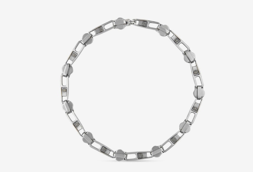 Еще одно предложение от Balenciaga — колье из застежек-молний, которые можно увидеть на куртках и джинсах бренда. На застежке — логотип Balenciaga, а фурнитура выполнена из состаренного серебра. Цена — 795 долларов (около 57 тыс. рублей).