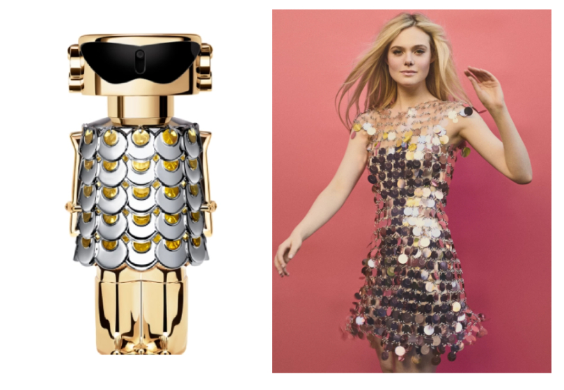 Интересен и флакон Fame. Генеральный менеджер по маркетингу Paco Rabanne Ромен Соттовия сравнил его с объектом желания или предметом коллекционирования. Как пишет издание WWD, золотая упаковка имеет отсылку к коллекциям и украшениям бренда, при этом очки вдохновлены очками Одри Хепберн. Кстати, это не случайно: аромат и его рекламная кампания уносит в 60-е годы, а лицо аромата — 24-летняя Эль Фаннинг, — копирует образ Бриджит Бардо.