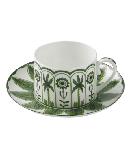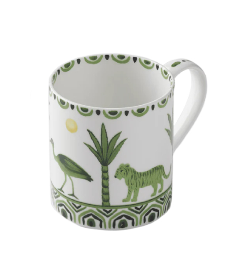 Первая линейка Sultan’s Garden представлена в молочных и зеленых оттенках с принтами растений и животных Индии. Приянка и Маниш говорят, что хотели создать рисунки, напоминающий райский сад в их родной стране. На сайте бренда уже представлены кружки из фарфора с тиграми и пальмами, тарелки с листками растений и черепахой; а также салфетки и скатерти изо льна с вышитыми пальмами и пальмовыми листьями. И, пожалуй, главный хит — настольная лампа с абажуром, напоминающий индийский сари.