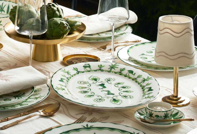Цена посуды начинается от 38 долларов, салфетки стоят 68 долларов, скатерть — 133 доллара, а настольная лампа — 98 долларов.