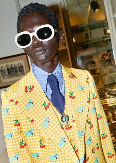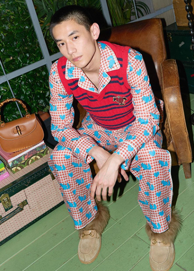 28-летний певец Гарри Стайлс — давний амбассадор и друг Модного дома Gucci. Он часто выходит в свет и появляется на обложках глянцевых изданий в вещах бренда. На этот раз певец совместно с креативным директором марки Алессандро Микеле предствил первую совместную коллекцию Gucci Ha Ha Ha. Интересно, что название полностью оправдывает себя: одежда получилась действительно забавной. В нее вошли брючные костюмы, расклешенные брюки, короткие кутрки, старомодные кепки. Но все внимание на детали, а точнее принты — улыбающиеся смайлики и сердца, голубые овечки и вишенки, а также голубые мишки. Подобные рисунки, кажется, можно встретить только на детских пижамах.