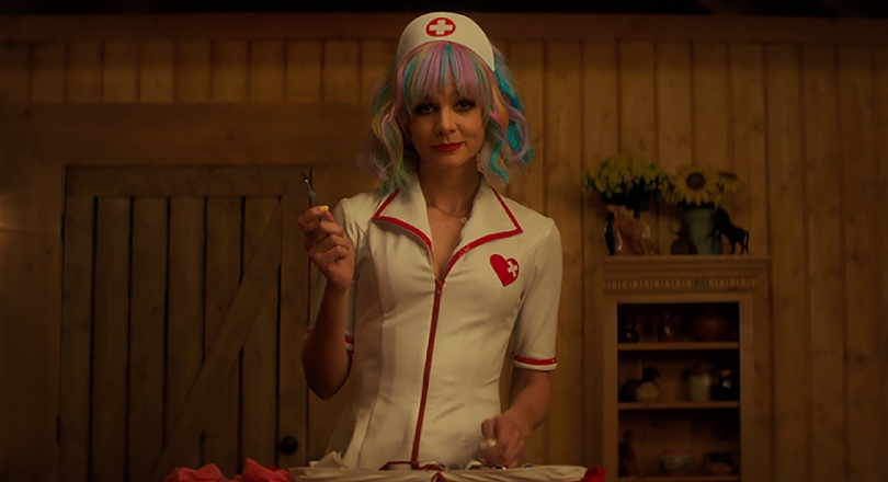 Штайнер говорит, что не смогла найти идеальный костюм для Кэсси, так что он был сшит специально для съемок по ее эскизу. Примечательно, что медсестра их Кэсси получилась все равно очень сдержанной, отражающей ее настоящий характер и цели: костюм выглядит очень опрятно, застегнут на молнию до конца. Дополняют образ алая помада и парик из разноцветных прядей — здесь снова можно увидеть двойственность персонажа. И, конечно, последний штрих — кулон с именем, в котором кроется главная разгадка действий героини.