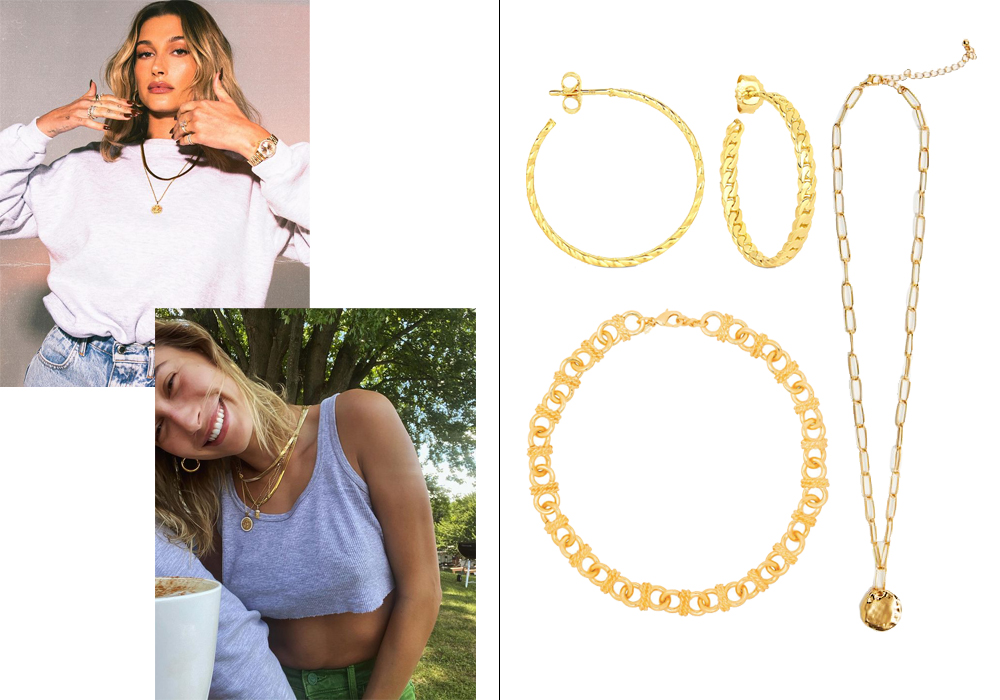 Главное правило: Хейли не относится слишком серьезно к украшениям, надевает их со спортивными костюмами и трикотажными топами. А еще девушка очень любит серьги-кольца (и чем они больше, чем лучше).