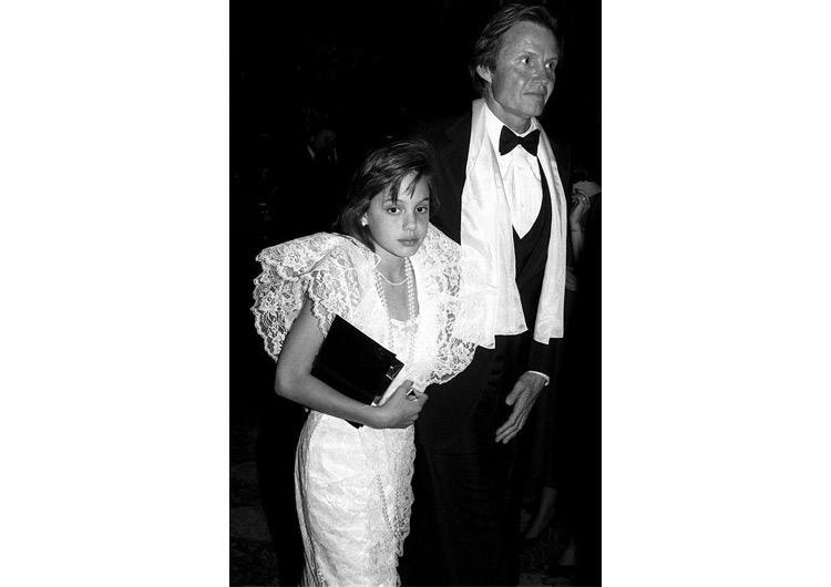 Мы не могли пройти мимо этого образа десятилетней Анджелины! «Оскар 1985» стал первым светским выходом будущей актрисы. Премию Энджи посетила с отцом Джоном Войтом. Нельзя не отметить безупречное чувство стиля девочки, несмотря на юный возраст. Для церемонии Анджелина выбрала белое платье с кружевом и длинное жемчужное ожерелье. Редкий кадр с короткой стрижкой и натуральным цветом волос.