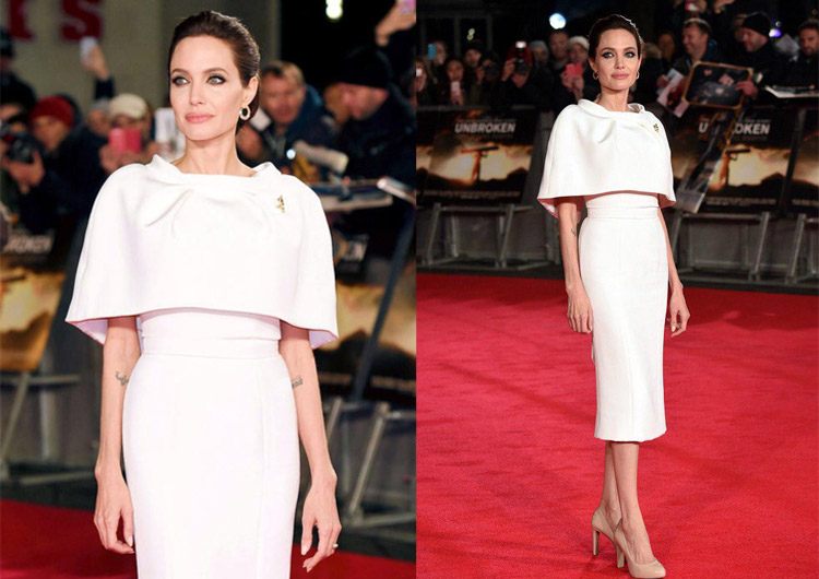 С чем точно нельзя поспорить, так это с выбором образа Анджелины для премьеры фильма! Джоли появилась на фотоколле с высокой, элегантной укладкой и макияжем, с акцентом на глаза. Платье тоже не осталось незамеченным – элегантный футляр с болеро от Ralph & Russo Couture подчеркивает хрупкую фигуру актрисы и полностью гармонирует с образом.