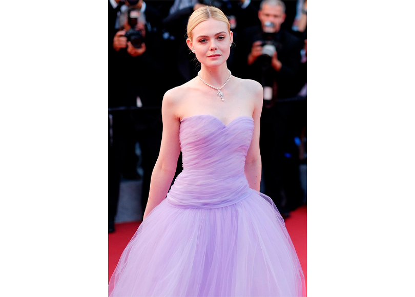 Когда ты всю жизнь играешь принцессу, неизбежно становишься ею. Это лиричное фиолетовое платье из тюля в сочетании с зачесанными волосами и розовым макияжем делает Эль похожей на современную Золушку, или, возможно, все ту же принцессу Аврору. Этот образ словно преследует Фаннинг!