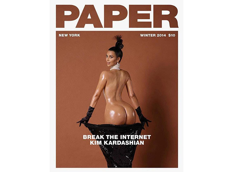 В 2014 году самая популярная женщина в мире объединилась с журналом небольшого тиража ради поддержки движения #BreakTheInternet. Фотография Ким, щедро смазанной маслом и демонстрирующей ее главный козырь, на самом деле, вызвала огромный резонанс. Во-первых, обложка подверглась нападению за изображение обнаженной «пятой точки». Многие критики отмечали, что Ким – мать, и она должна «прикрываться», так как наличие детей, по мнению критиков, лишает привлекательности формы женщины. Во-вторых, Кардашьян обвинили в сильном фотошопе, это фото породило массу мемов. Тем не менее, были и более серьезные, более академические критические замечания, особенно в расовом отношении.